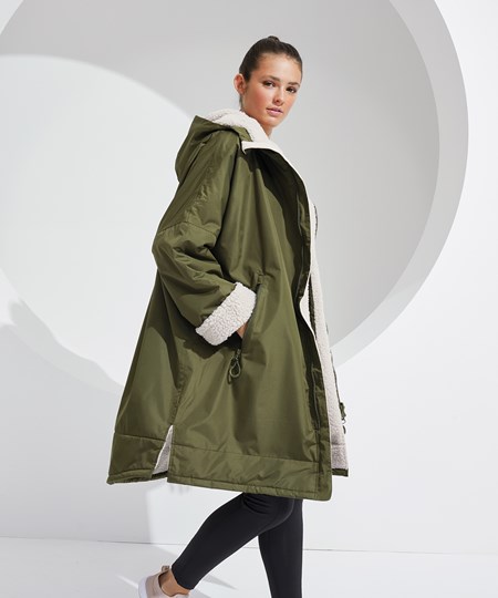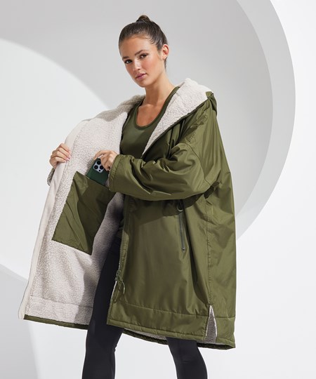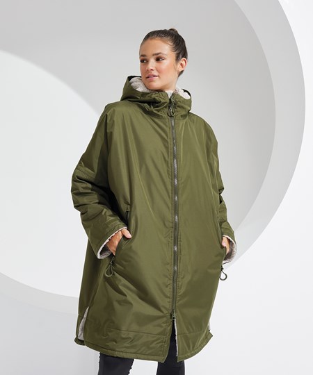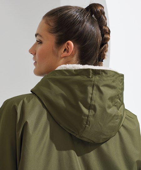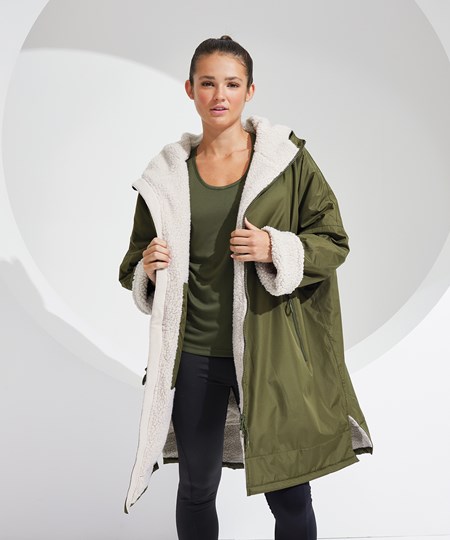 TriDri’s latest outerwear is essential in everyone’s wardrobe! The TriDri® All-seasons waterproof changing robe boasts a waterproof exterior with hood to keep you dry, as well as adjustable straps to the wrists and chin guard to help lock in heat on windy days. The cosy sherpa fleece interior absorbs moisture and keeps you warm, making it a great choice after water activities or rainy days on the football pitch. Designed to be oversized, the jacket is ideal for changing into warm, dry clothes, offering a double zip – so more room to move! Featuring multiple deep pockets, inside and out, it’s not just for athletes, but perfect for rainy commutes or frosty walks with the dog.