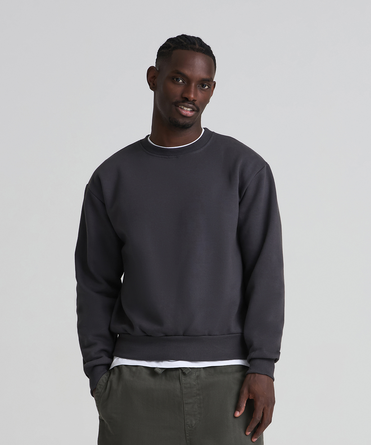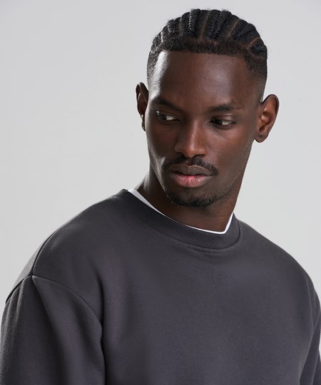 The Vision heavyweight sweat is built to be your blank canvas for print and design. Made with 100% cotton-faced fabric, it offers a smooth surface for bold artwork, featuring a brushed inner fleece. With a relaxed fit and 2x1 ribbed cuffs and hem, plus twin-needle stitching for added durability, this premium sweatshirt balances comfort with a clean finish. Complete with locker patch and size label only, it’s the ideal choice for merch, rebranding and standout designs. Made with recycled polyester.