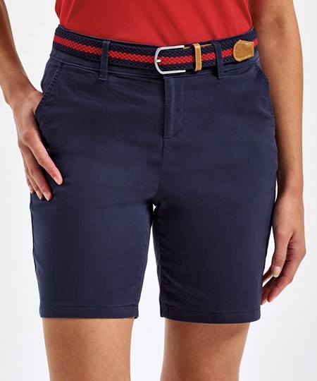 Umarmen Sie Smart-Casual mit den leichten Chino-Shorts für Damen in Ihrer Garderobenkollektion. Sie verschmelzen elegantes Tailoring mit luftigem Shorts-Styling und sind in den wärmeren Monaten nicht zu übersehen. Kombinieren Sie es mit einem Polo und einem Blazer für einen Look, der Sie vom Kundenmeeting bis zum Cocktail begleitet.