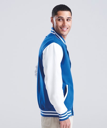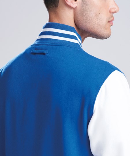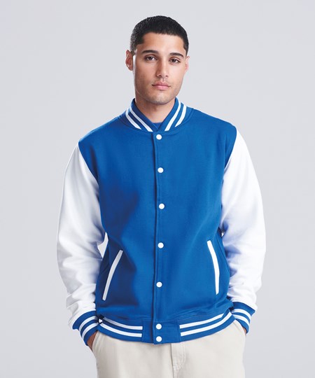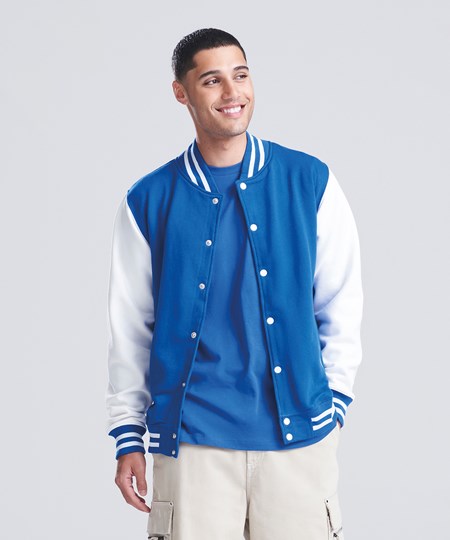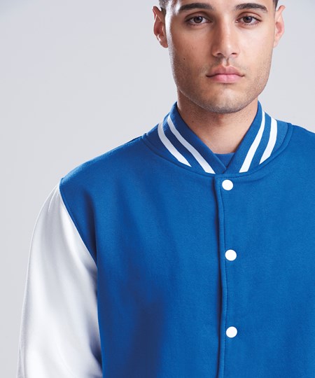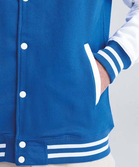 Die AWDis Just Hoods Varsity Jacket (JH043) ist die perfekte Kombination aus klassischem Design und modernem Komfort. Diese unisex College-Jacke besteht aus einem weichen Baumwoll-Polyester-Mix und überzeugt durch ihre strapazierfähige Verarbeitung. Mit kontrasfarbenen Ärmeln, gestreiftem Kragen, Bündchen und Druckknöpfen bietet die Varsity Jacket den typischen College-Stil und eignet sich ideal als Rohling für individuelle Veredelungen. Ob für Vereine, Teams oder den Einzelhandel, diese College Jacke ist vielseitig einsetzbar und perfekt für den B2B-Großhandel geeignet. Bestellen Sie die AWDis College-Sweatjacke bei RalaTeam und profitieren Sie von attraktiven Preisen und flexiblen Gestaltungsmöglichkeiten.