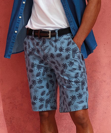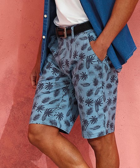 Wir präsentieren die Palmen-Shorts für Herren – ein zeitloser Stil für den Sommer. Sie sind aus weicher und leichter Baumwolle gefertigt, um Sie kühl zu halten, haben eine bequeme Passform und verfügen über ein Palmen-Print-Design, einen Reißverschluss, aufrollbare Säume und einen kontrastierenden Knopf. Stylen Sie diese Shorts mit einem hellen T-Shirt für Küstentage oder einem Hemd für schickere Wochenenden.