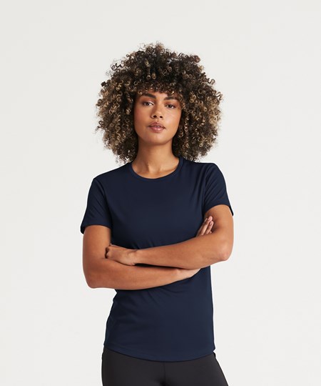 Ce T-shirt de coupe féminine est taillé dans un tissu Neoteric™ léger qui permet d’évacuer l’humidité de votre peau. Avec son col rond uni et ses mancherons, sa conception sans limite en fait une pièce essentielle de votre garde-robe sportive.
