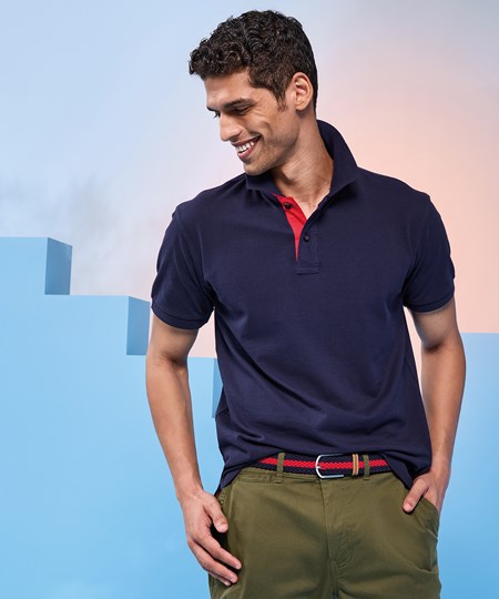 Polo contrasté coupe classique homme boutons et dessous de col contrastés