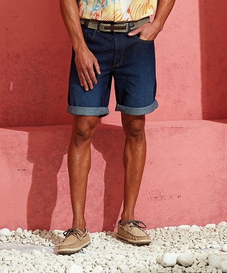 Quoi de mieux qu’un short en jean classique ? La coupe de ce short en jean homme est plus large au niveau des cuisses afin que vous puissiez facilement le porter retroussé si vous le souhaitez. Délavé pour une finition plus authentique, il inclut des décorations en laiton avec des coutures contrastées.