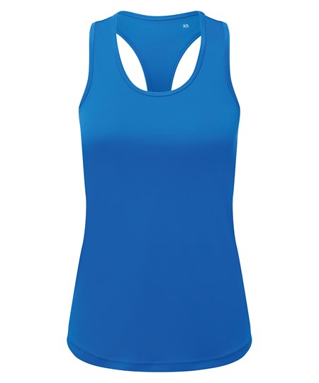 Het gerecyclede, prestatiegerichte en smalle racerbackvest voor dames houdt u droog en geconcentreerd. Dit vest is gemaakt van zachte, 100% gerecyclede polyesterstof die zweet afvoert.