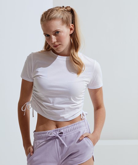 Make a statement in the women’s TriDri® ruched crop top. Inspired by the TR019 crop top, this update features ruched detailing to both sides that can be easily adjusted to create your desired look. Dressed up or down, whatever the occasion, this style won’t look out of place.